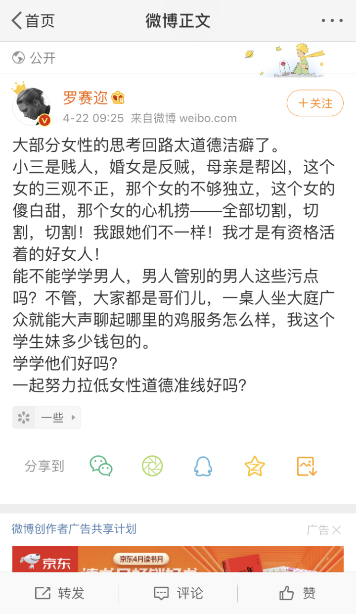 田园女权的愚昧就在于表达太多了,这种表达的成功之处是确实造成了形势的扭转(譬如说男性对女性提处女情结少多了),失败之处就是暴露(关键词在于“暴露”)了这是一群很双标的人。