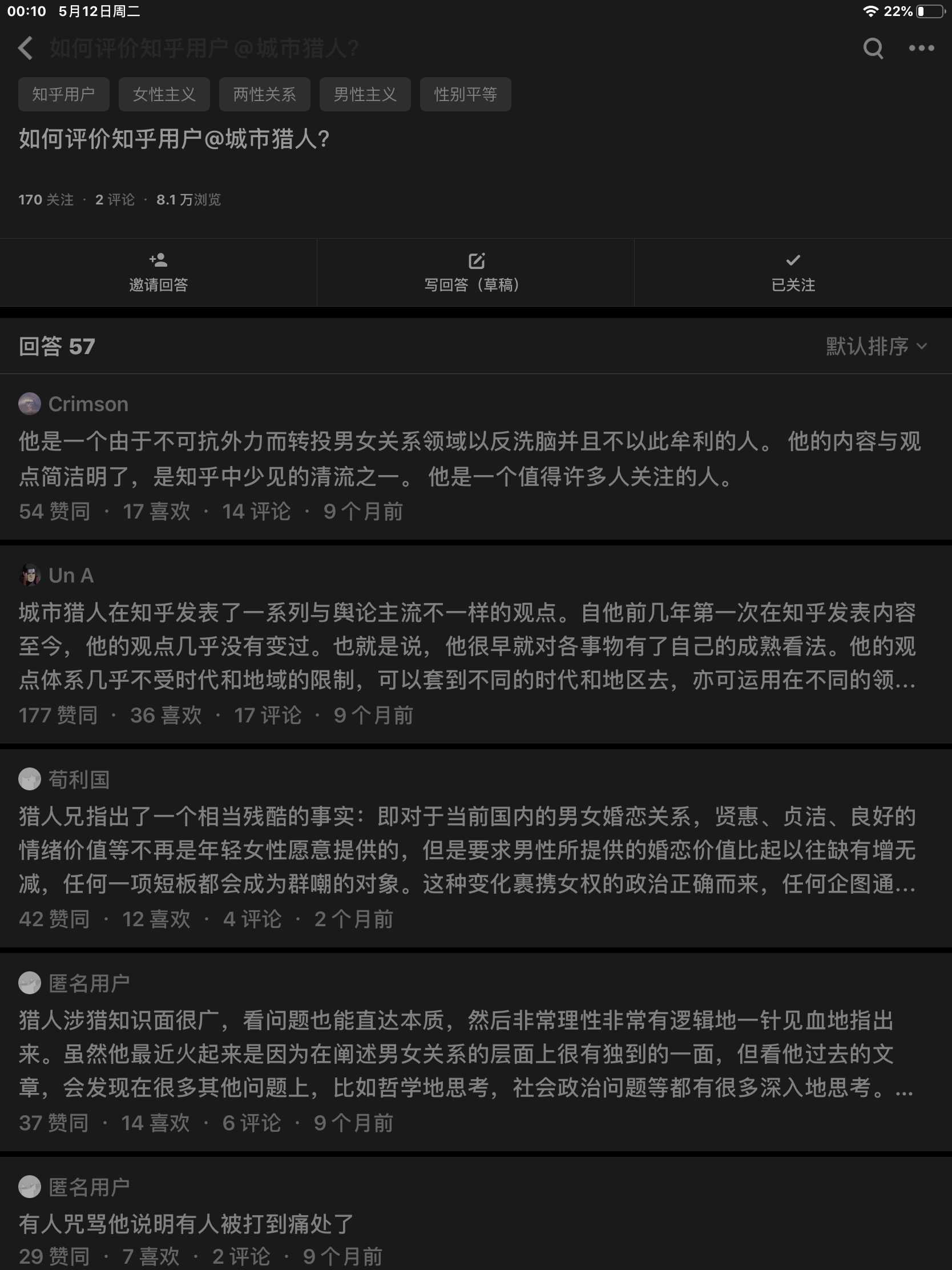 我讲一个客观事实,在两性领域,我似乎没有过万赞的答案,而他有三十个左右过万赞的答案。他完全碾压我,这就是真相。