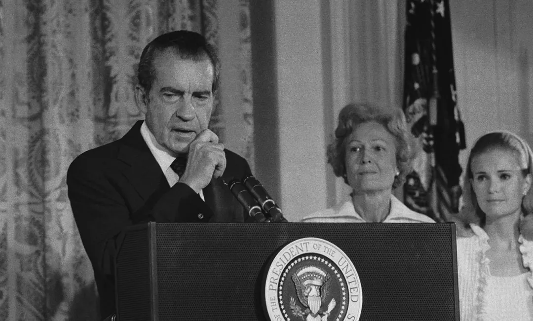 尼克松也不是没考虑过叫私人卫队来白宫保护自己的安全,但他最终决定辞职,并在第二天宣布辞去了总统职务。